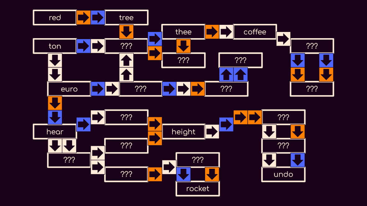 The intermediate word between two arrows must be a valid english word.